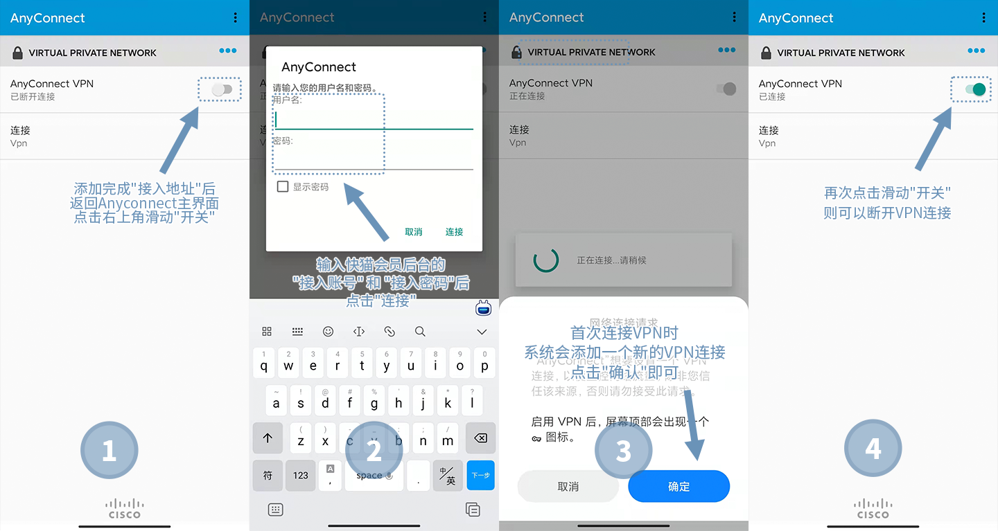 Anyconnect支持Android 4.0内核或更高版本的系统。