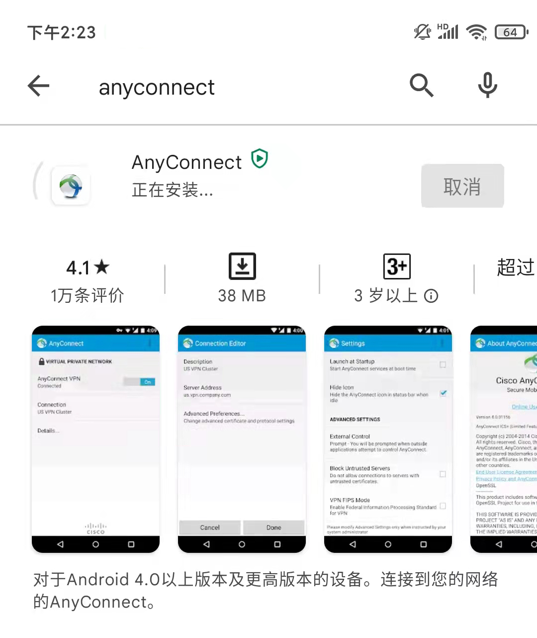 第一步:下载安卓版本Cisco Anyconnect工具